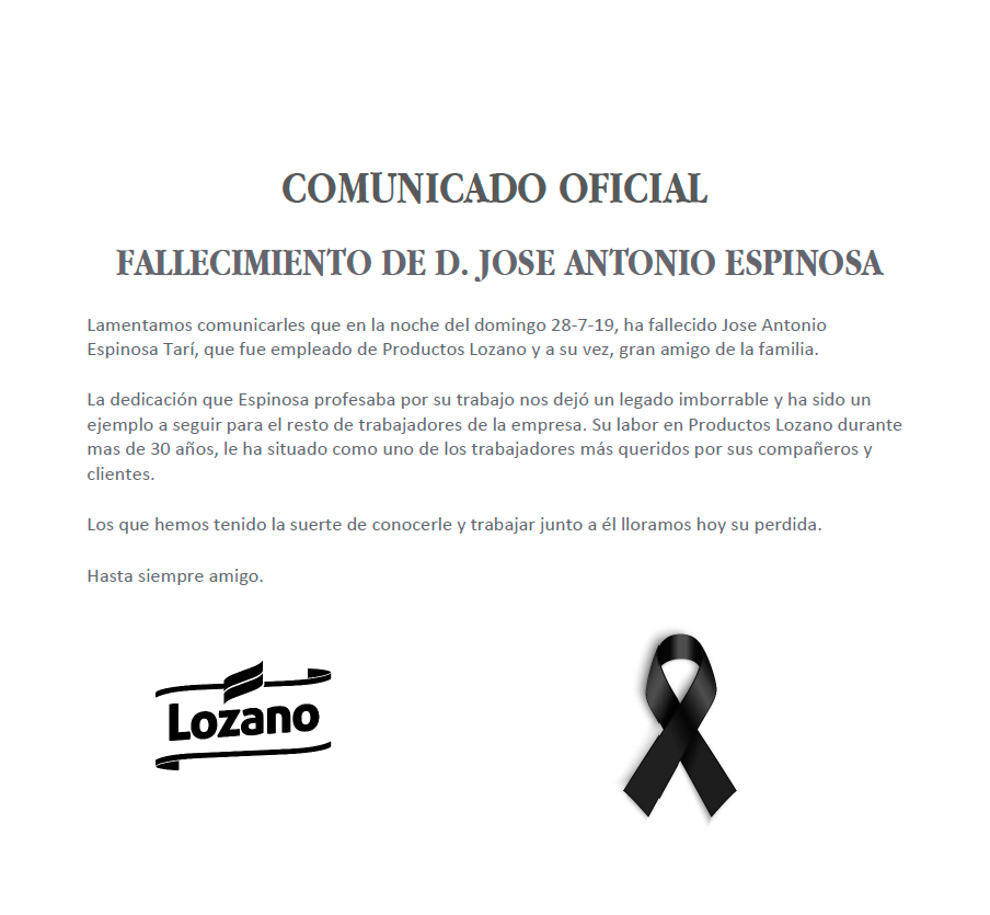 No se apellidaba Lozano pero era uno más de esta gran familia. En la madrugada del 29 de julio, José Antonio Espinosa nos dejaba, como siempre, de manera injusta. Y es que tan sólo hacía un año que se había jubilado, después de varias décadas de empeño y dedicación en la empresa. Nada menos que 30 años, en los que hemos aprendido mucho de él y compartido grandes momentos.