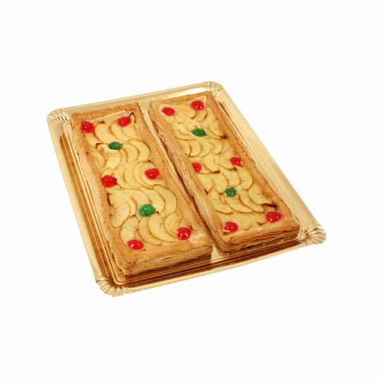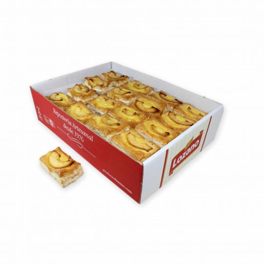 La auténtica y genuina tarta de manzana, pero la de verdad: elaborada a mano, con crema pastelera, decorada con manzana natural recién pelada y coronada con guindas.