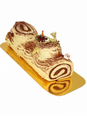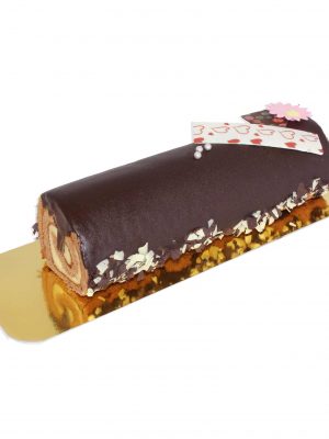 Brazo decorado, de crema y chocolate