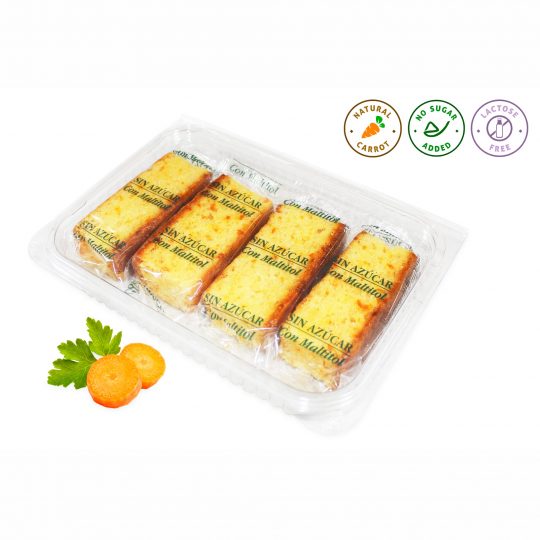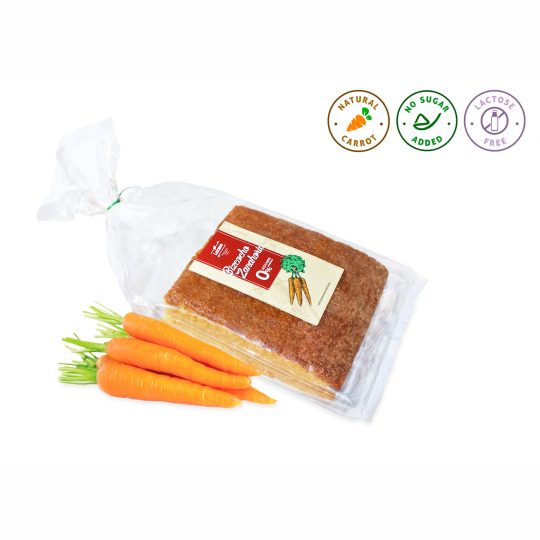 Edulcorante (xarope de maltitol*22% ), farinha de TRIGO, óleo de girassol, OVOS, cenoura natural (10%), humidificantes (xarope de sorbitol e glicerina), fécula de batata, agentes levedantes (bicarbonato de sódio e E-450i), amido de milho modificado, acidificante (ácido tartárico [L(+)-]), conservantes (E-281 e E-200), acidificante (ácido cítrico), aromatizantes e vanilina.