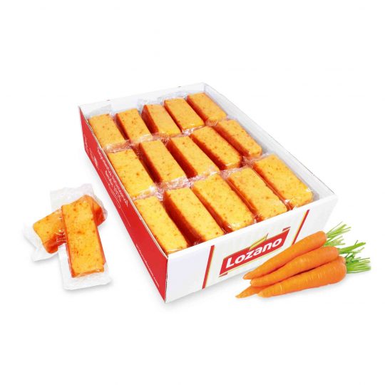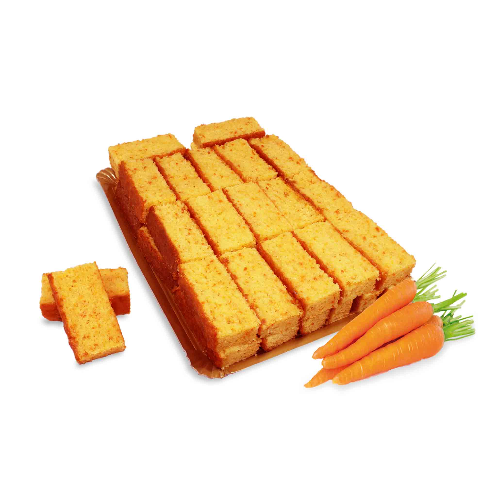 Bolo com pedaços de cenoura, esponjoso e com o sabor doce do vegetal. Sem adição de açúcares.